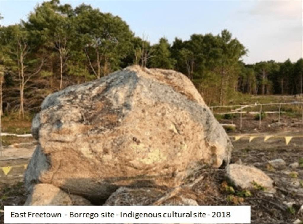 In August 2021, a cultural site in Hopkinton was destroyed by Grasshopper Solar. Dozens more Native American sites are targeted for destruction under the ruse of the state’s “renewable energy” program: projects are in the approval process in Rochester, Wareham and Northfield.
